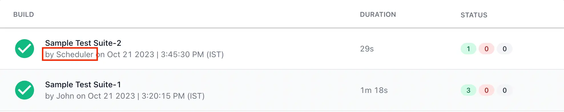 - On demand builds can be differentiated from the scheduled builds using the “Triggered by” field under Build Name.