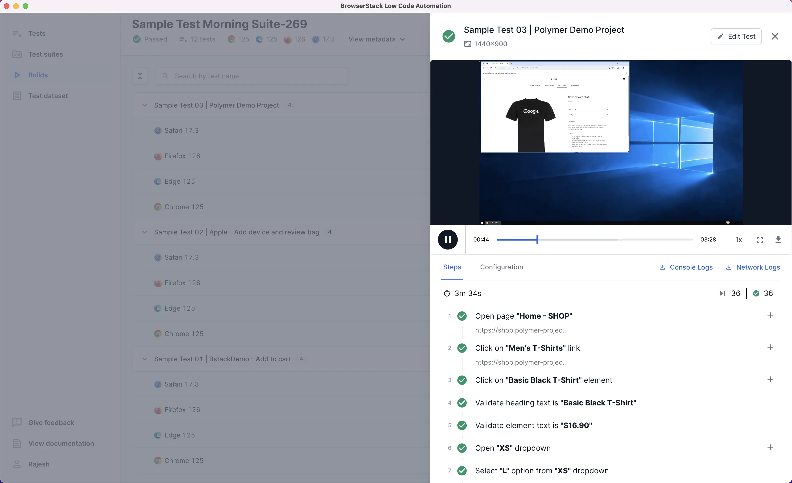 Every test suite is set to run on BrowserStack’s cloud infrastructure by default when executed.
