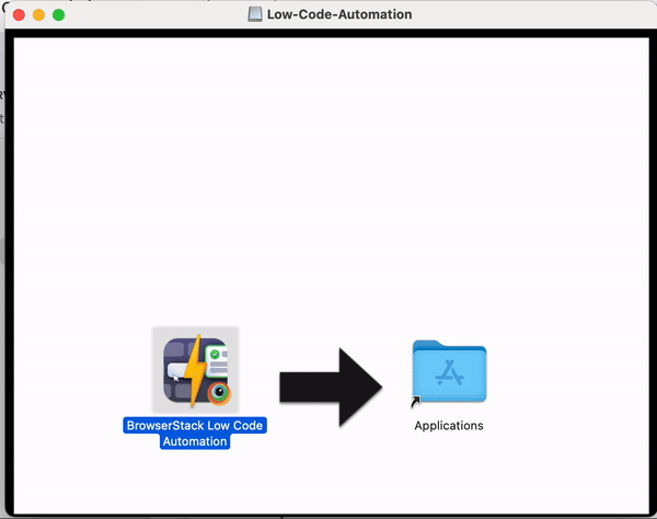 - Drag the BrowserStack Low Code Automation application to your system’s Applications folder.