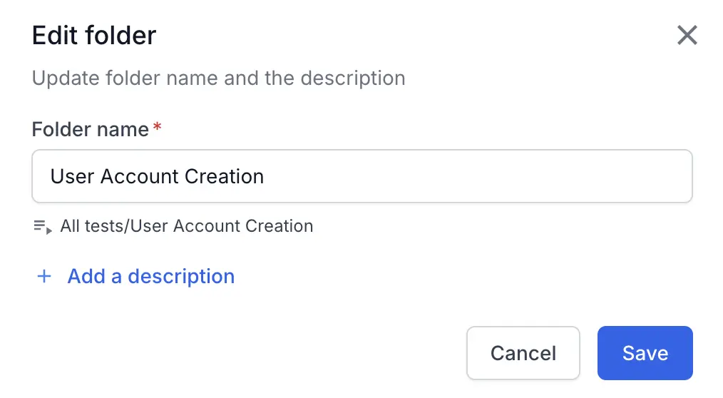 - In the Edit folder dialog, modify the folder’s name and description as needed.