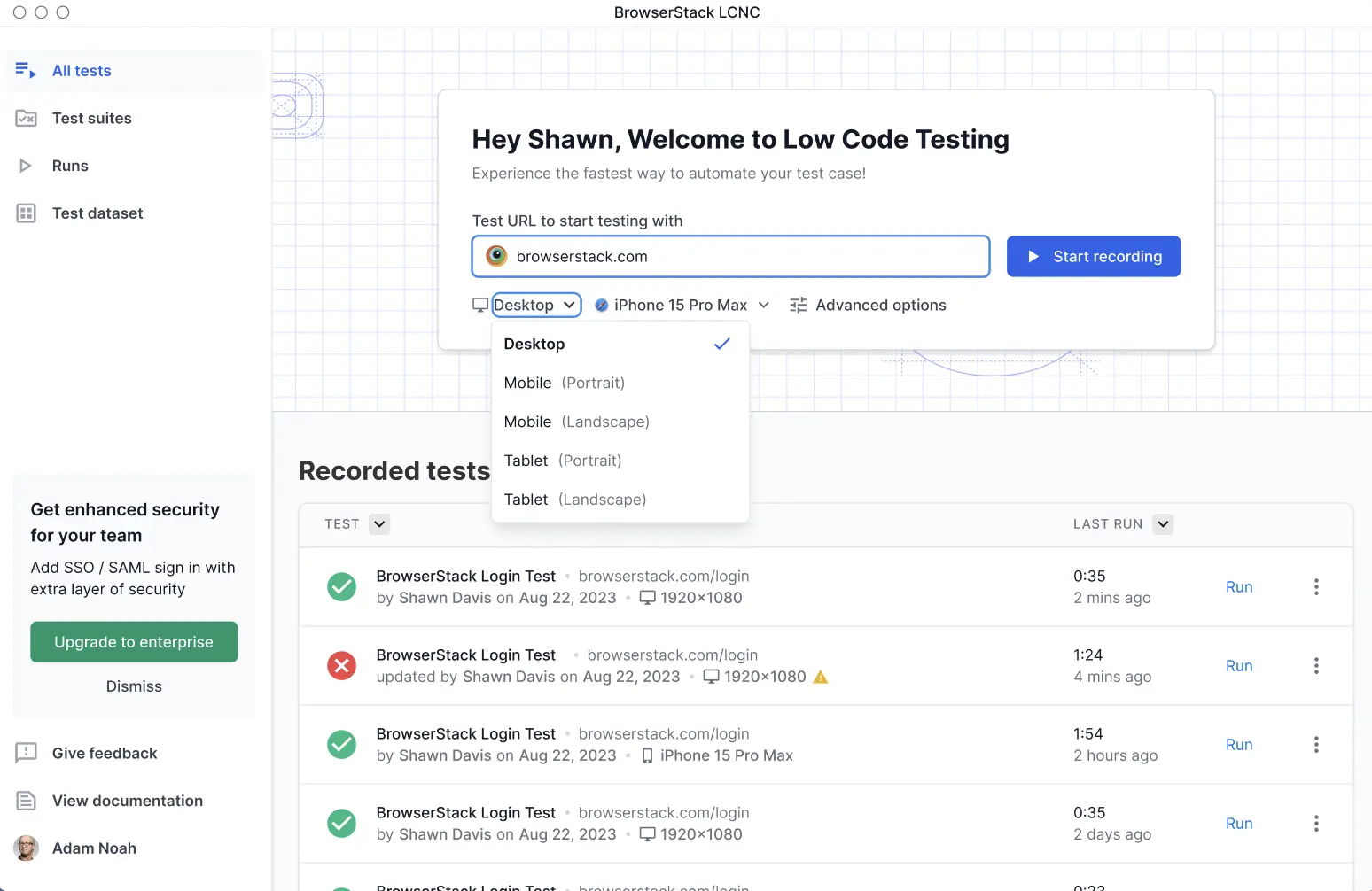 BrowserStack Low Code Automation allows you to set up device profiles and resolutions for testing.