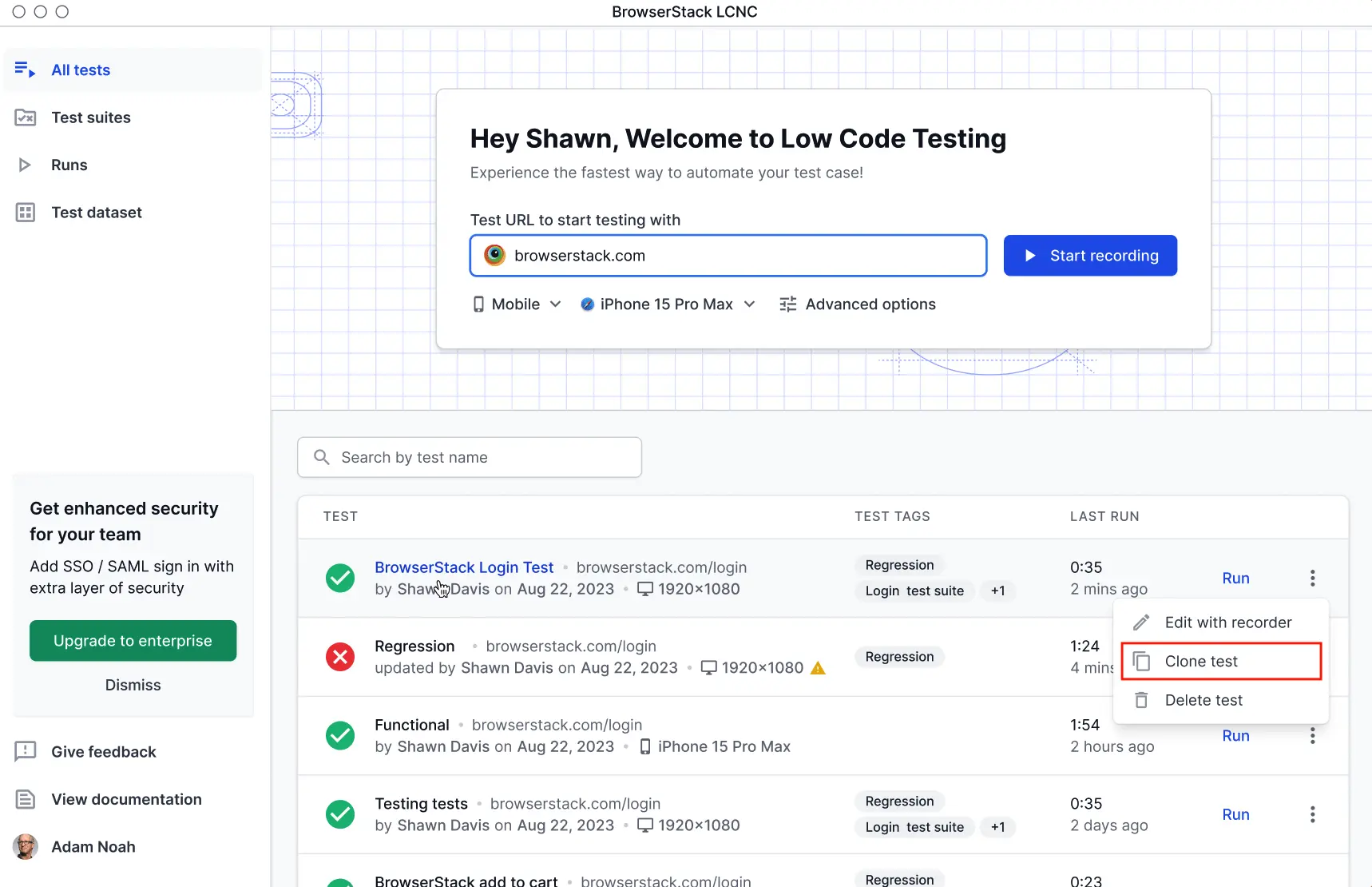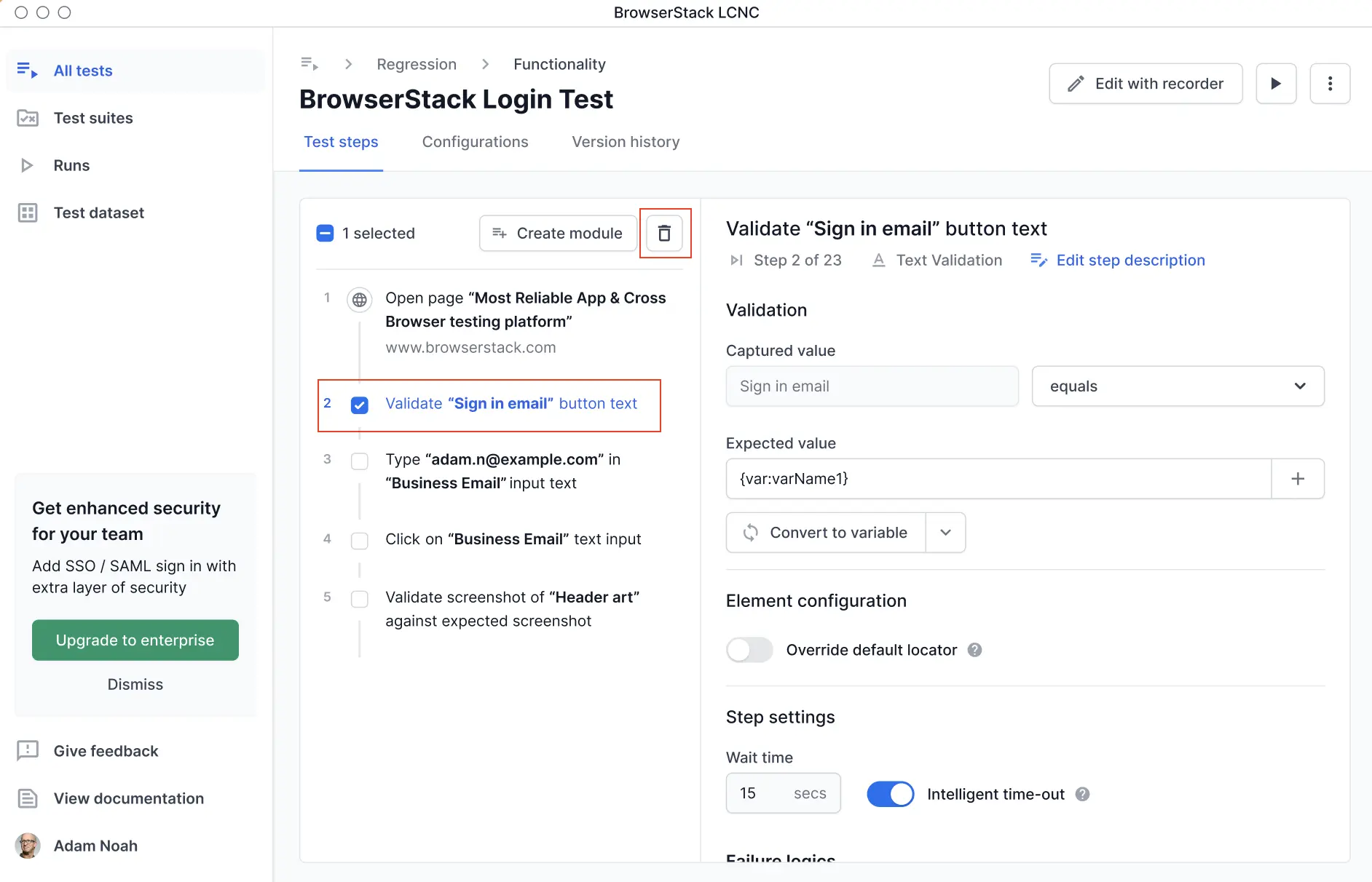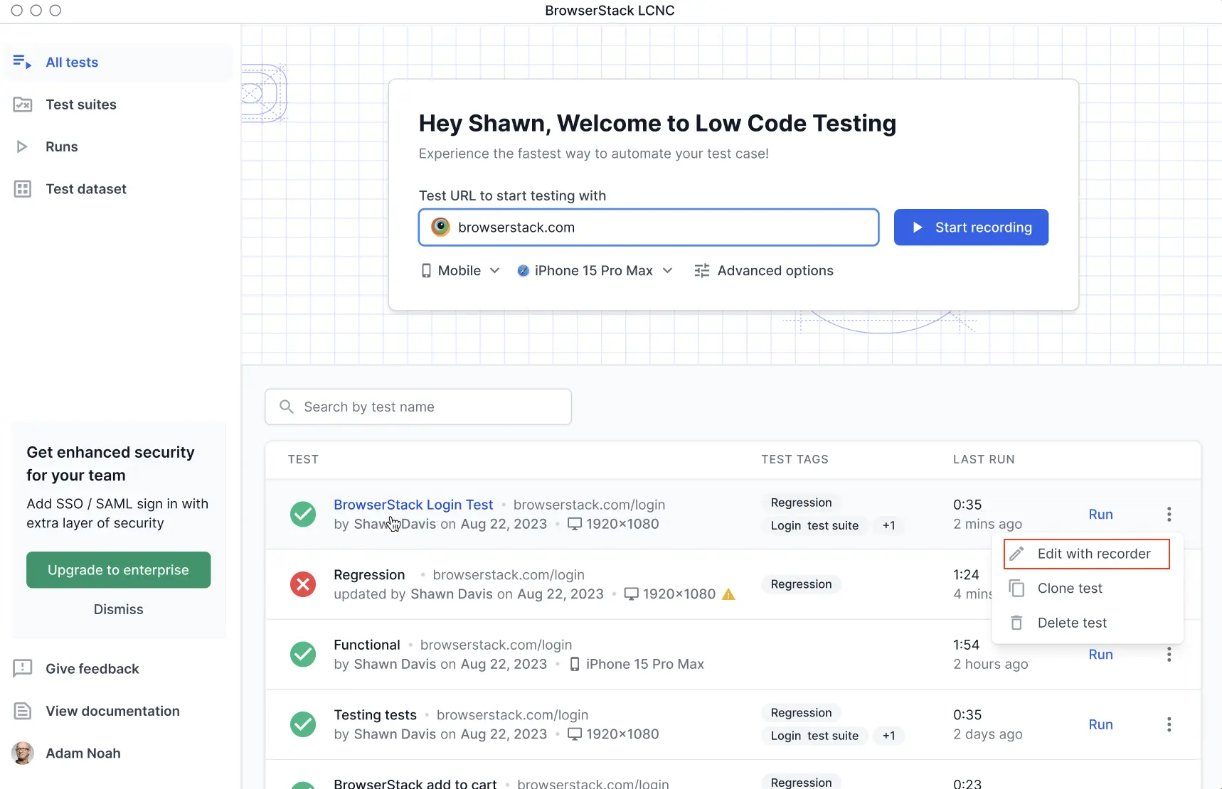 BrowserStack Low Code Automation enables you to edit a test seamlessly at any time, with or without launching the recorder.