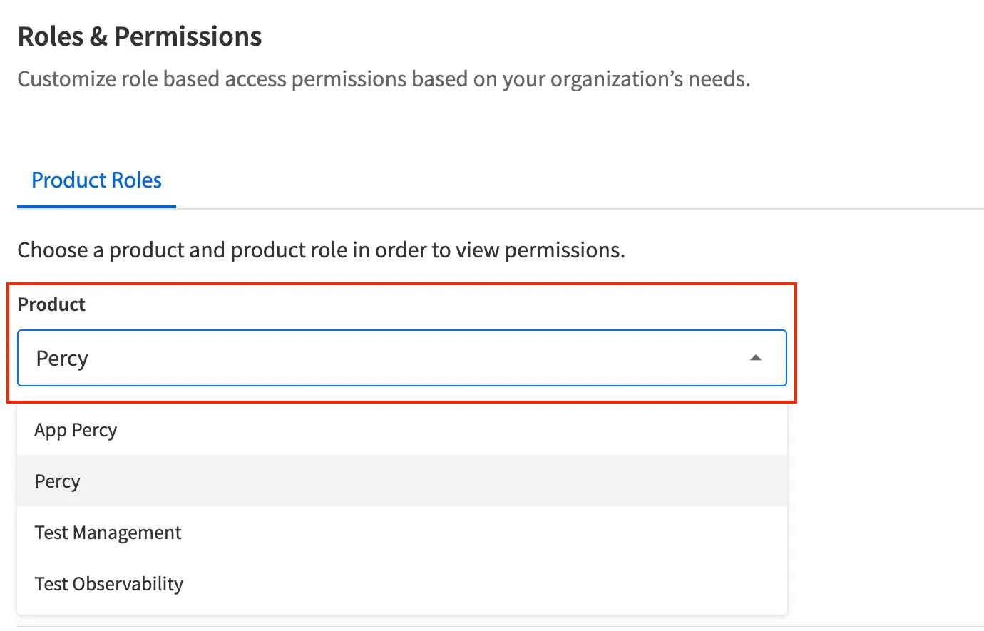 The product role controls access to specific functions in Percy. Following are the product roles in Percy: