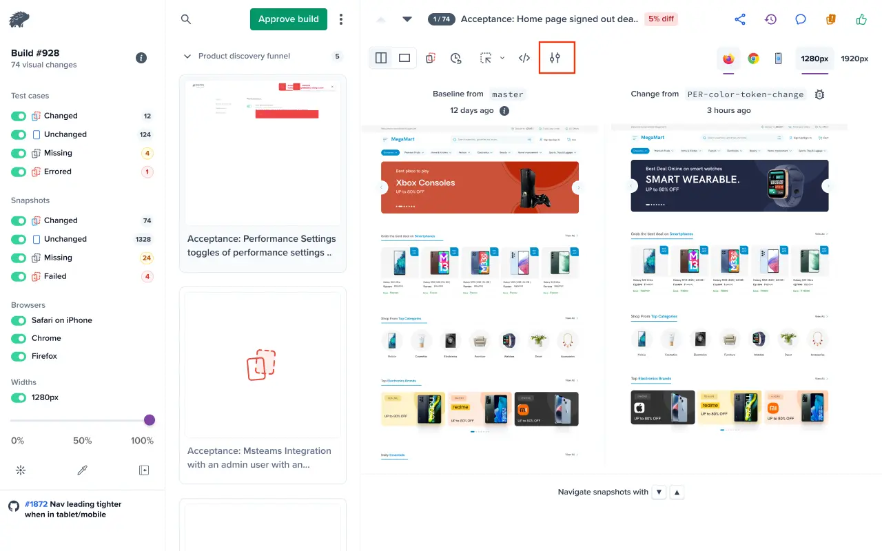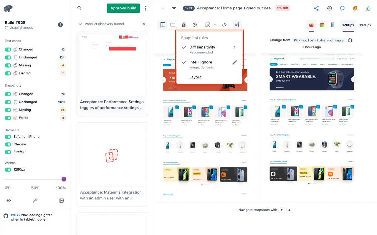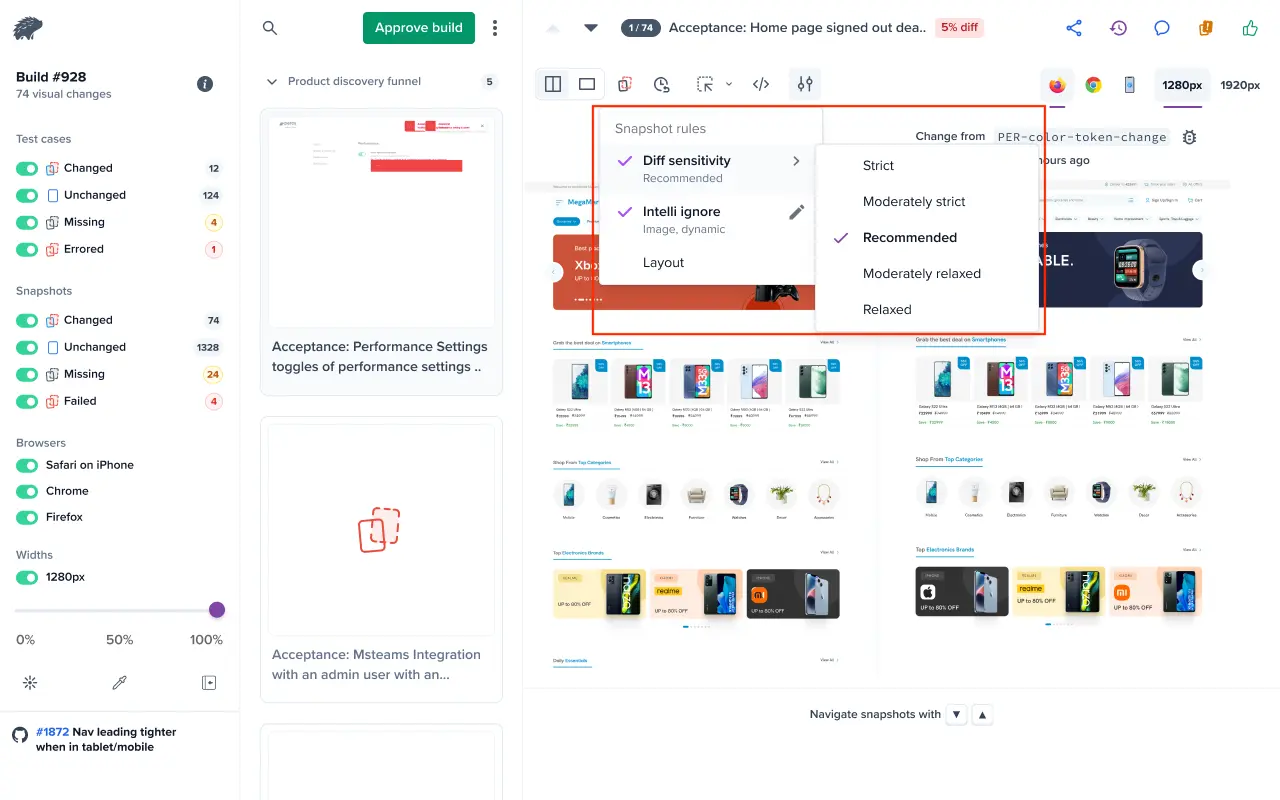 - Diff sensitivity: Allows minor visual variations without triggering diffs. For more information, see Diff sensitivity.