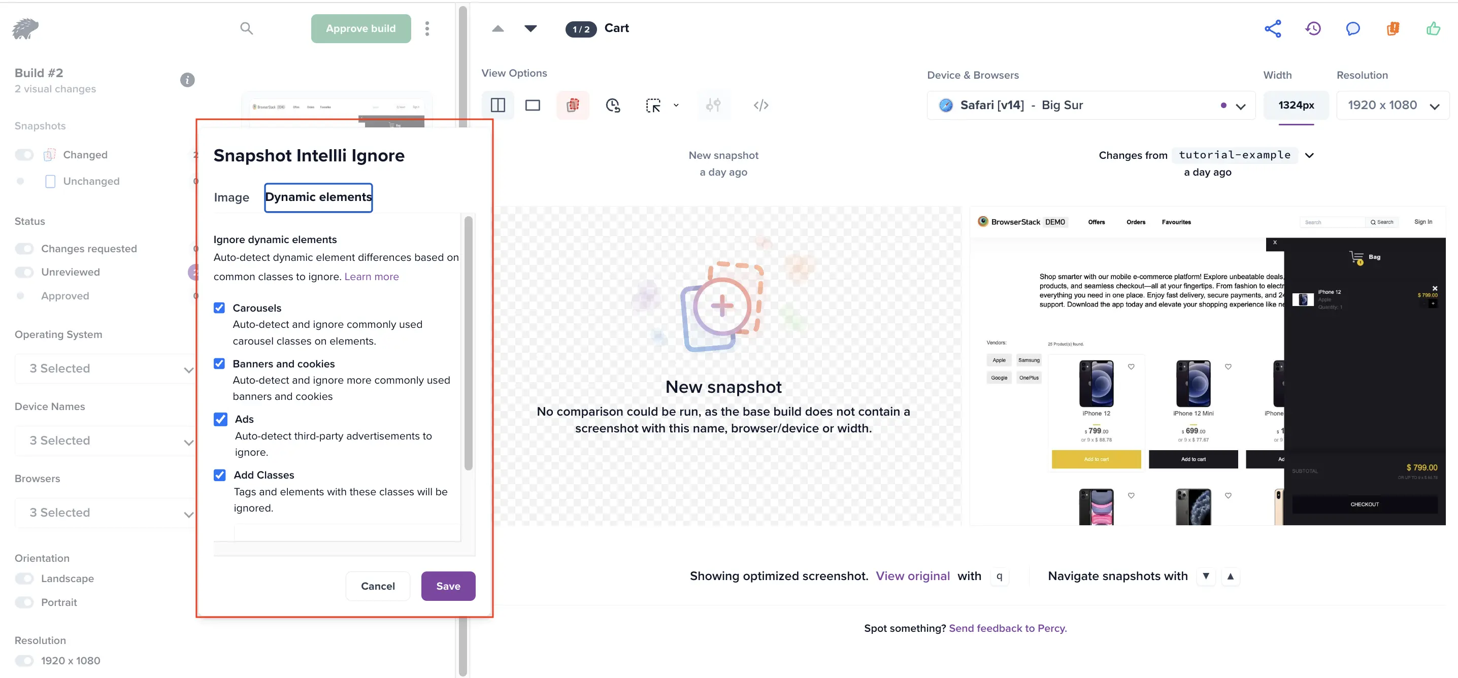 By enabling algorithm selection per snapshot, you gain more control over how Percy detects visual differences, tailor reviews to your use case and reduce the time spent validating irrelevant changes.