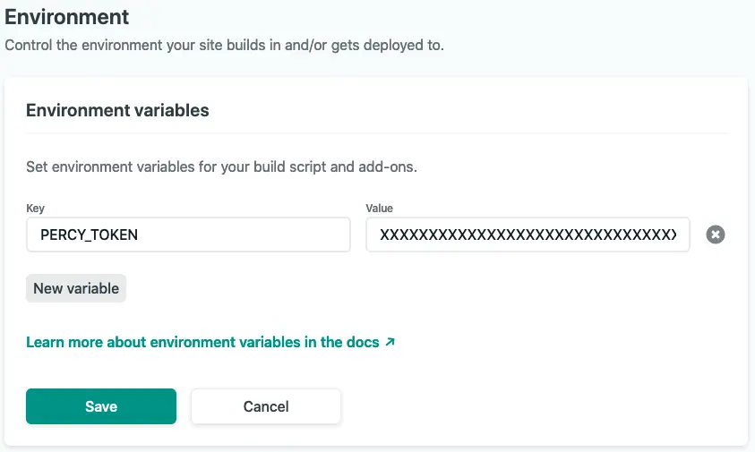 Start by configuring PERCY_TOKEN, our project-specific, write-only API token. It can be found in your Percy project settings and set via your your site dashboard or team settings.