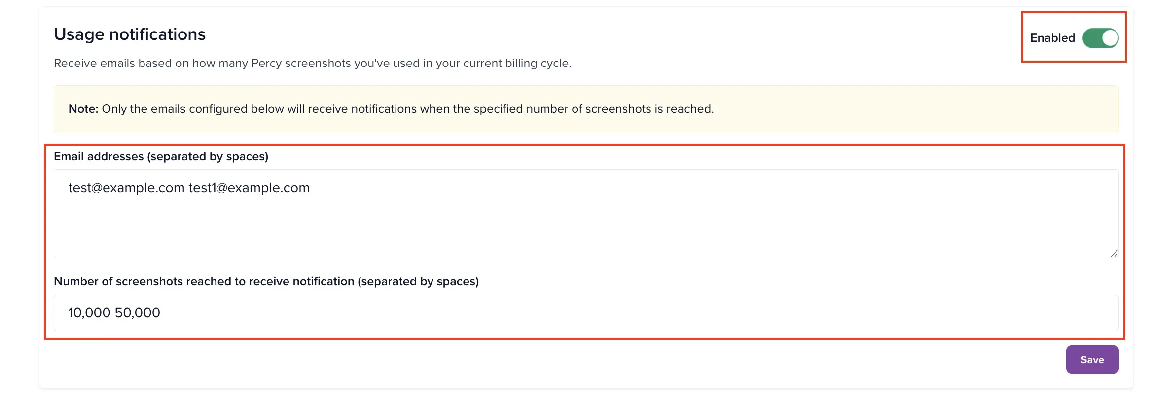 - Go to Usage > Usage notifications, and then enable the Enabled toggle button.
