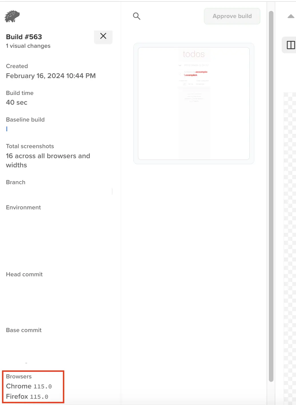 Keep in mind that you will occasionally see different visual diff counts for each browser because each renders slightly differently. Catching those browser-specific visual regressions is an advantage of cross-browser testing.
