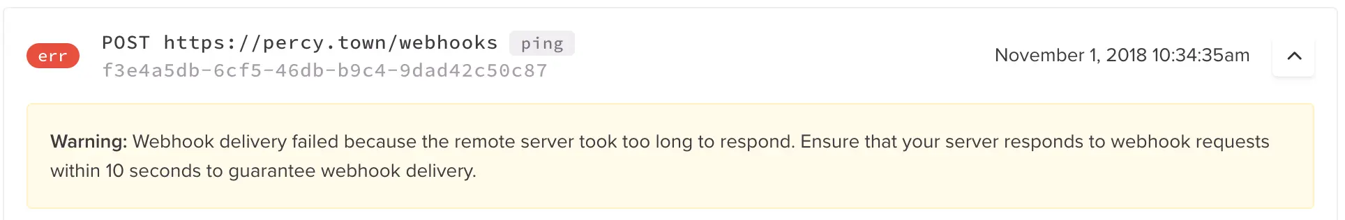 If we weren’t able to deliver the webhook successfully, you’ll see an error message in the expanded list, including potential remediation steps.