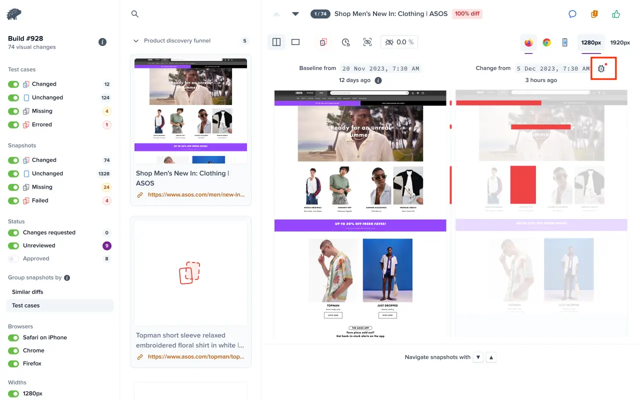 - Asset source types: All asset sources, assets captured by Percy, public assets.