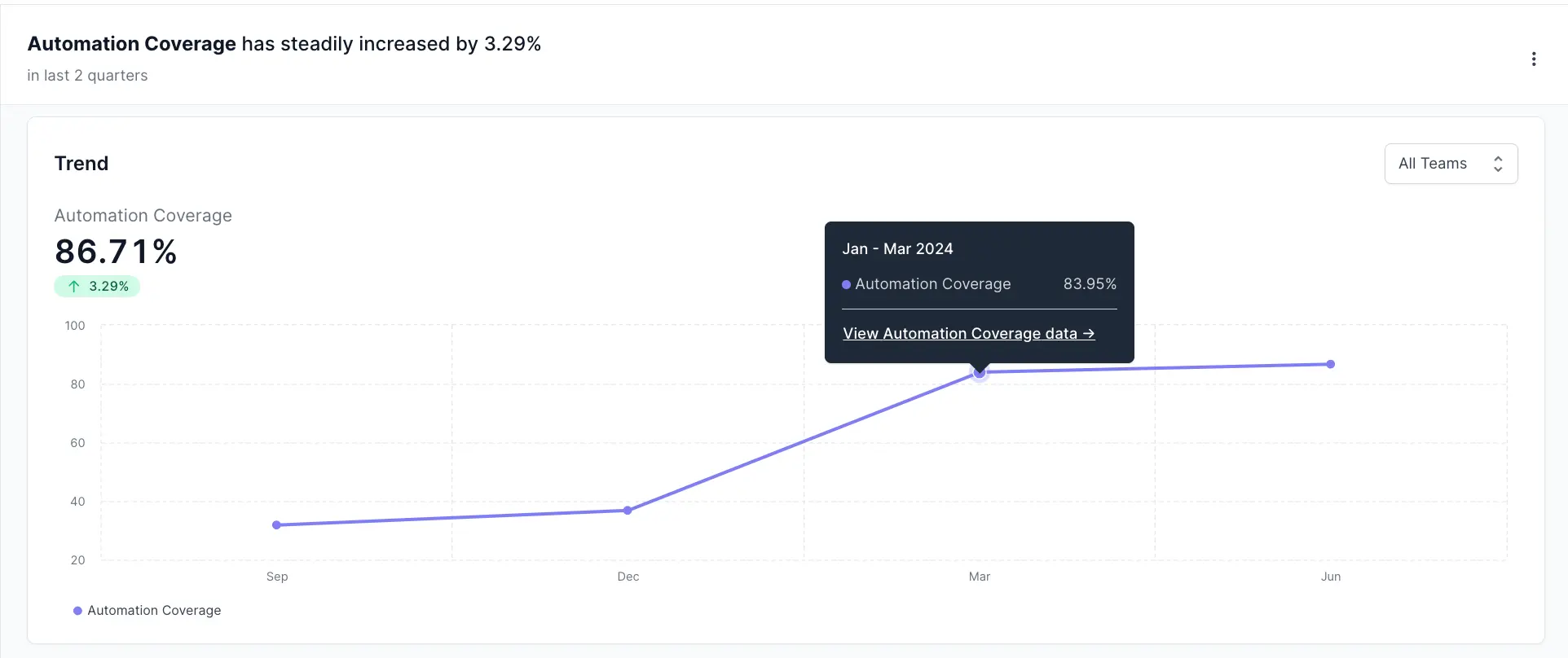 Showcases significant successes in automation coverage, defect management, and other critical performance indicators. For example, the Average Defect Resolution Time has decreased. This indicates that your team is resolving issues more quickly which is significant achievement for the team.
