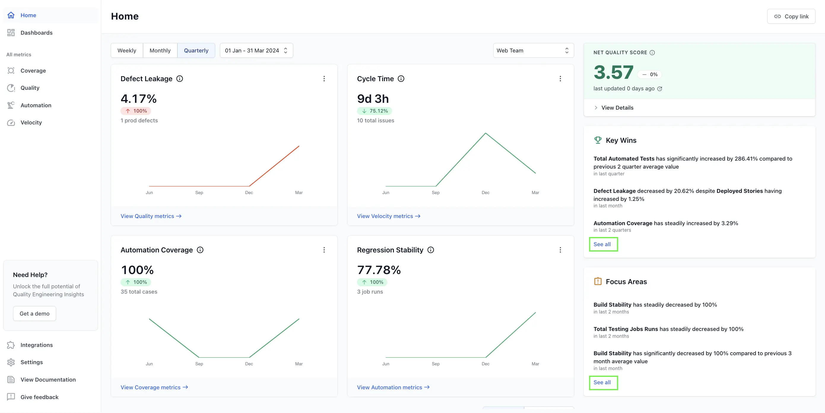 - Go to Quality Engineering Insights.