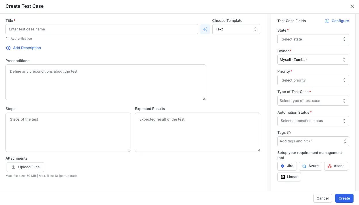 Integrate Linear with Test Management to create and manage your testing workflow, enhance collaboration, and ensure seamless project management. This integration allows you to link your test cases and test runs directly to Linear tasks, track progress in real-time, and maintain clear visibility across your development by keeping all tasks organized in one place.