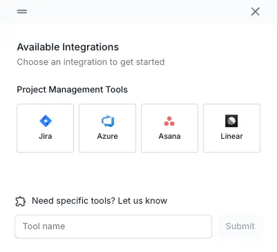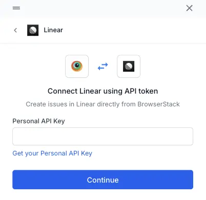 If no tracking tool is integrated, you will see Linear as a button. If not, you will find it in the drop-down.- Click Connect to Linear.