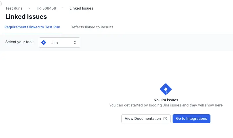 The linked requirement issues from Jira will display here. You can also switch to Defects linked to Results tab and view the linked defect issues.