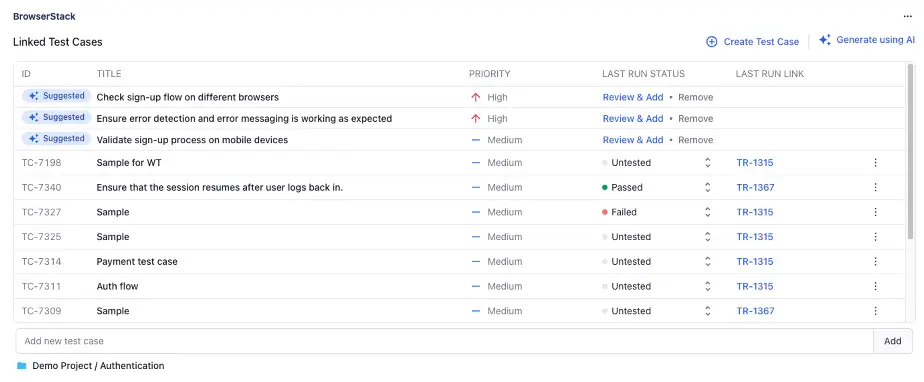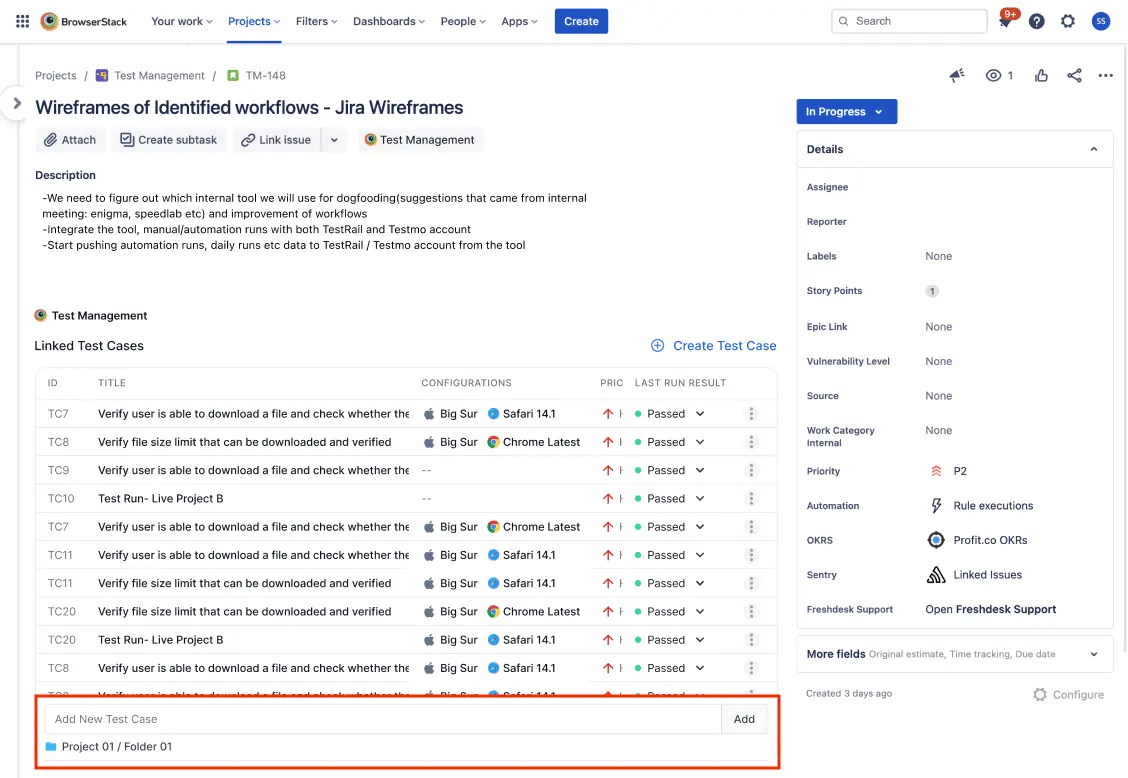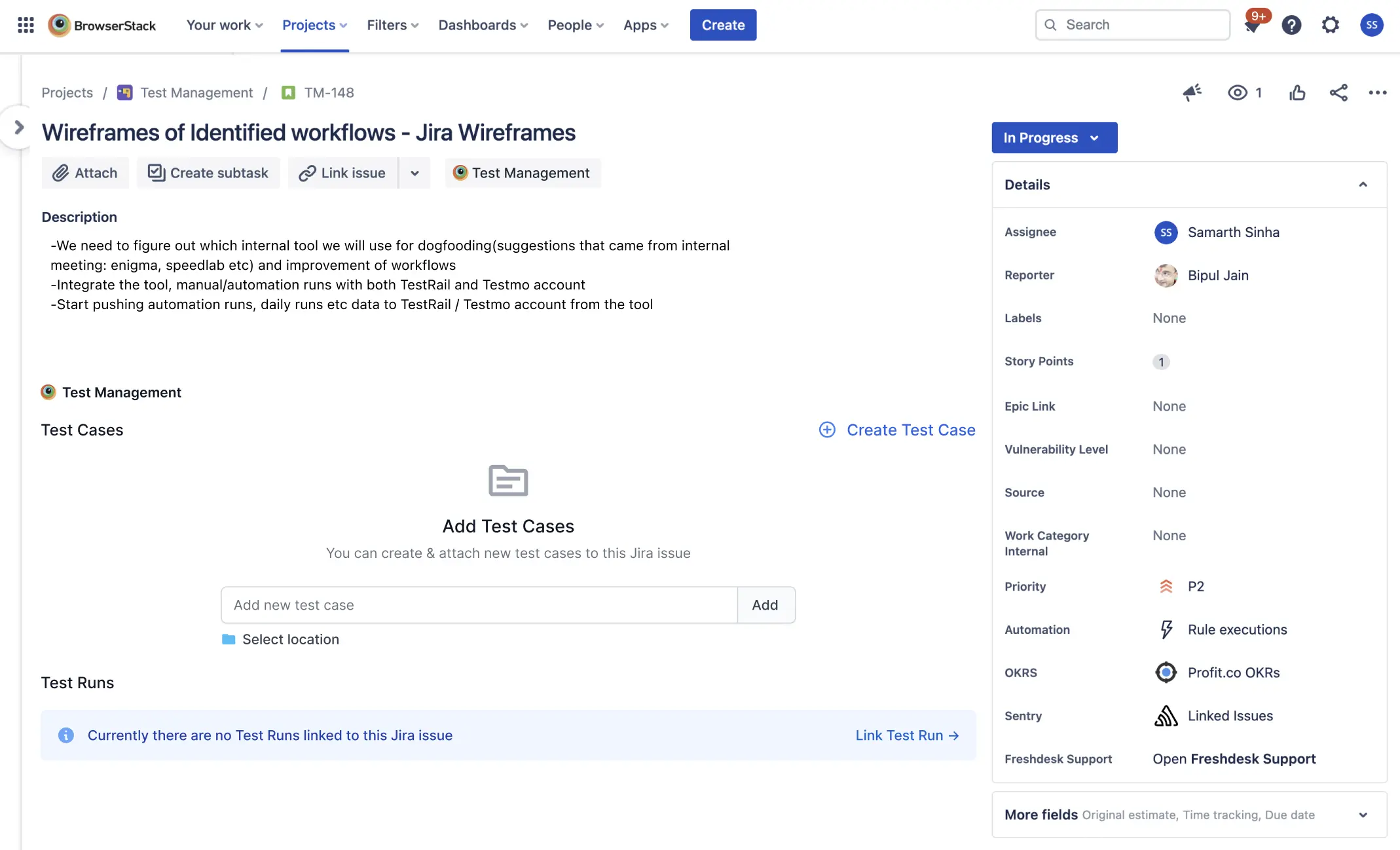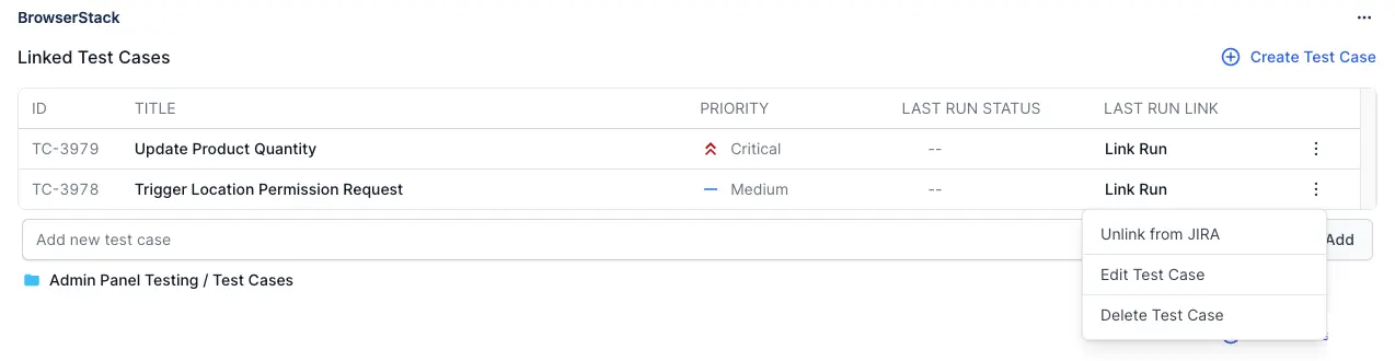 The BrowserStack integration for Jira app simplifies your workflow by allowing you to create and manage test cases directly within Jira. You can edit or delete test cases as needed. You can also unlink the test case from the associated Jira issue.