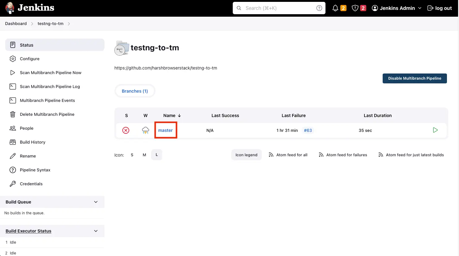 Go to your Jenkins Dashboard and select the master branch of your Pipeline.