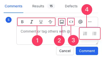 - Insert images (see annotation 2): Add visual elements to your comments by including images.