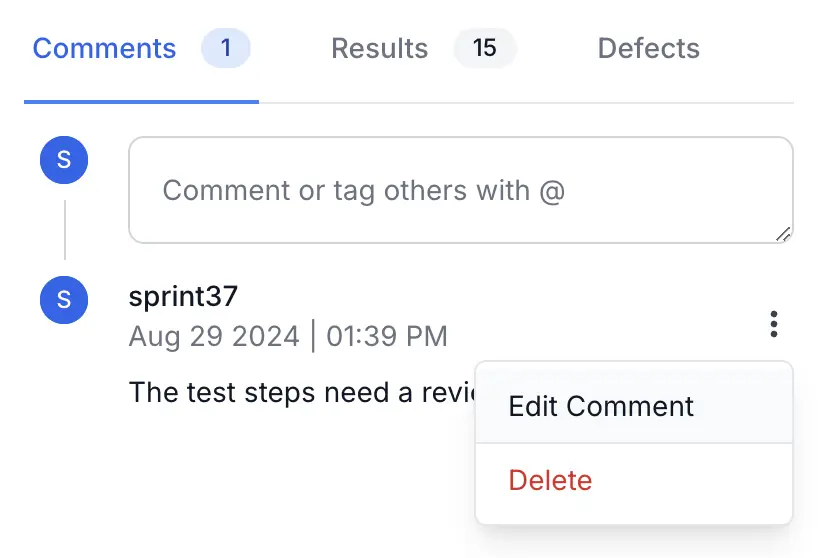 Adding a comment to a test case is a straightforward way to share feedback, ask questions, or keep everyone on the same page. Follow these steps to add a comment: