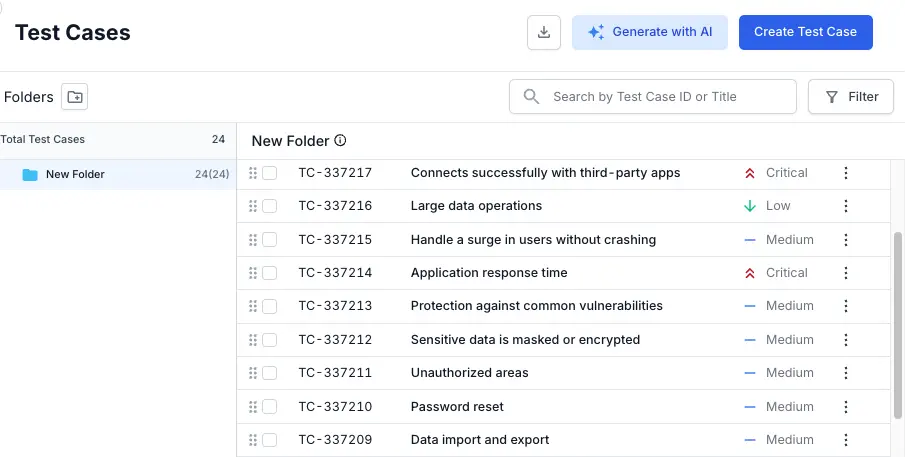 Test cases can also be filtered based on various criteria, allowing you to focus on particular aspects of the application. Additionally, shared steps across test cases help maintain consistency and reduce redundancy, making it easier to manage large numbers of test cases.