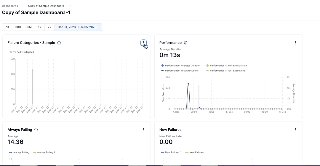 If you need more than one widget of the same type on a custom dashboard while you build or edit a dashboard, you can use the clone option to build it much faster. These widgets of the same type could be to track data from different projects, builds, users, etc.