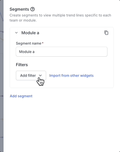 You can configure separate segments in the Test Executions widget for different modules or teams in your test suites. To do this, you need to use segments in combination with the following filters to identify modules and teams: