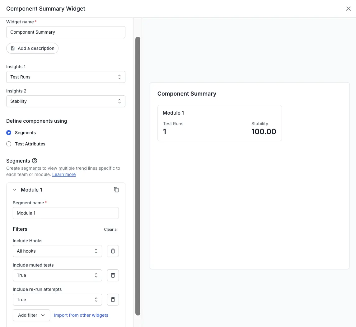 Test Runsas one of the insights. - Select segments to define modules, teams, etc.