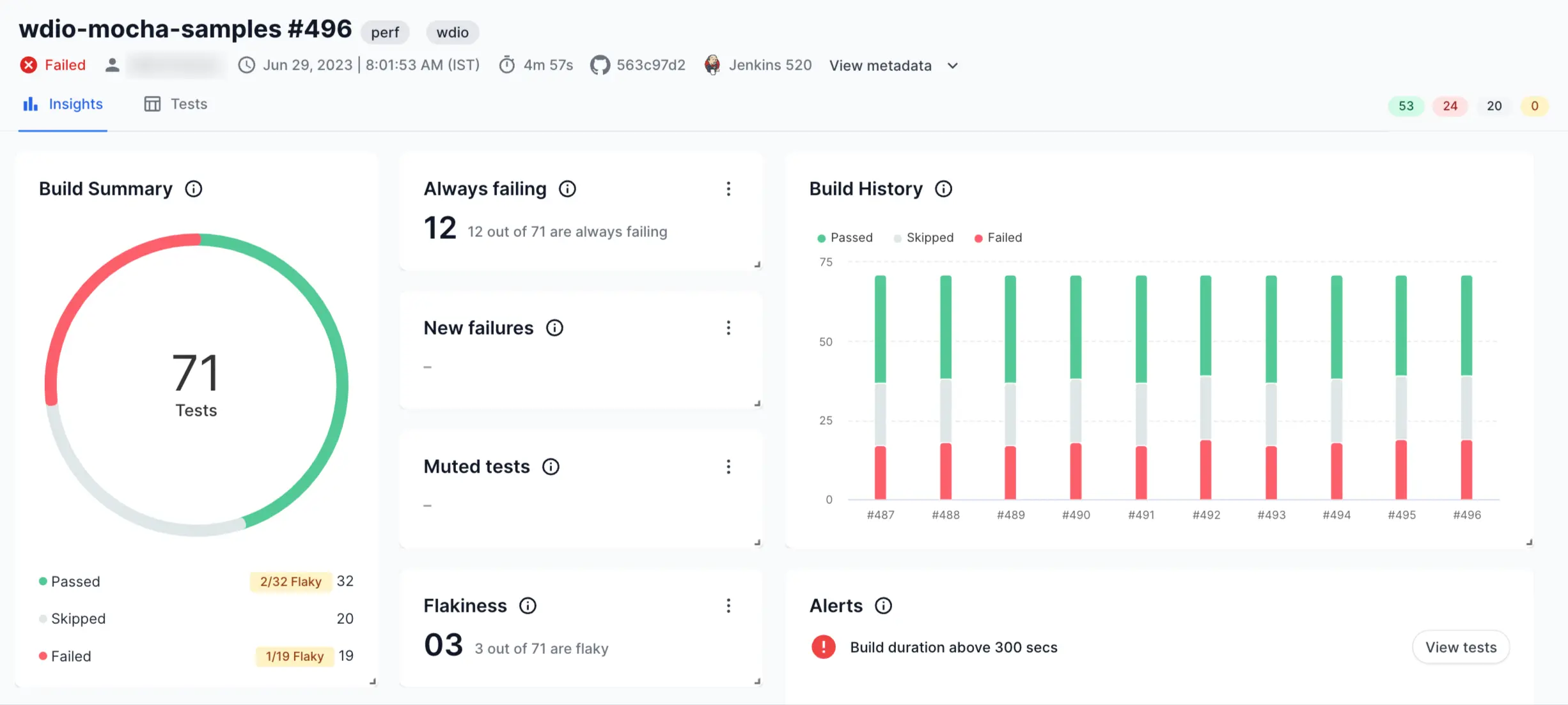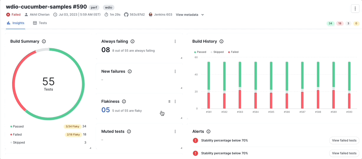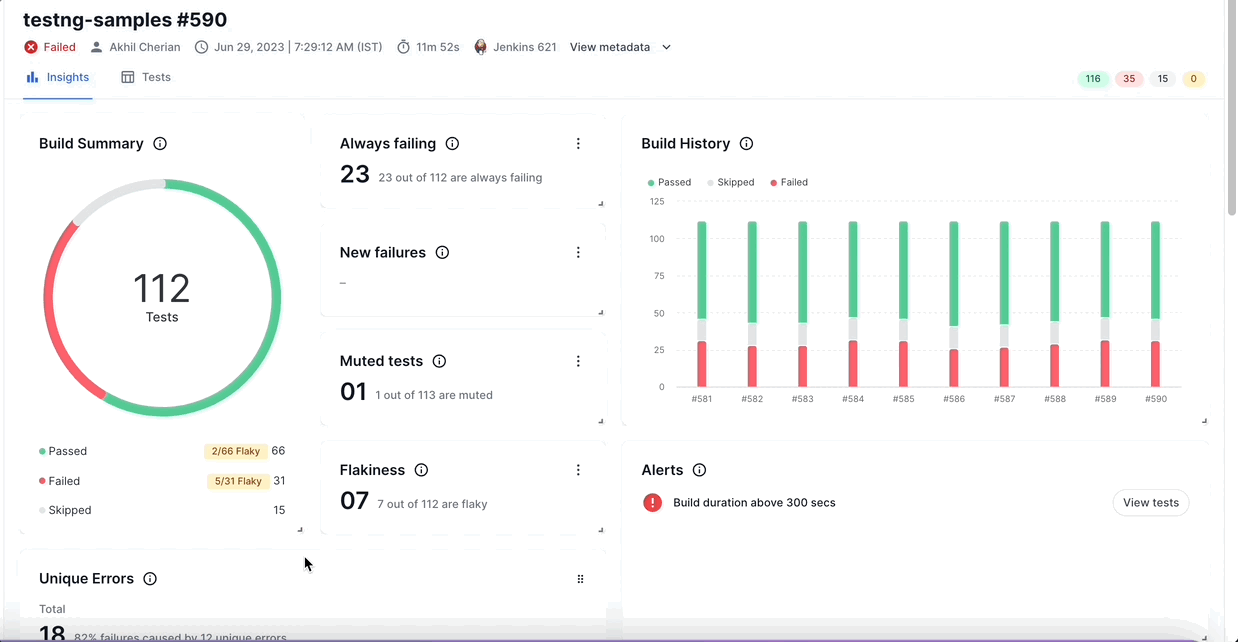 Discover meaningful insights on your build runs and the tests associated with them.