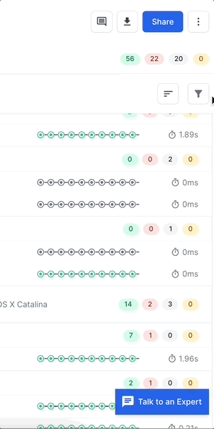 Reruns & Splits: Allows you to view tests that are part of a particular rerun or split run.
