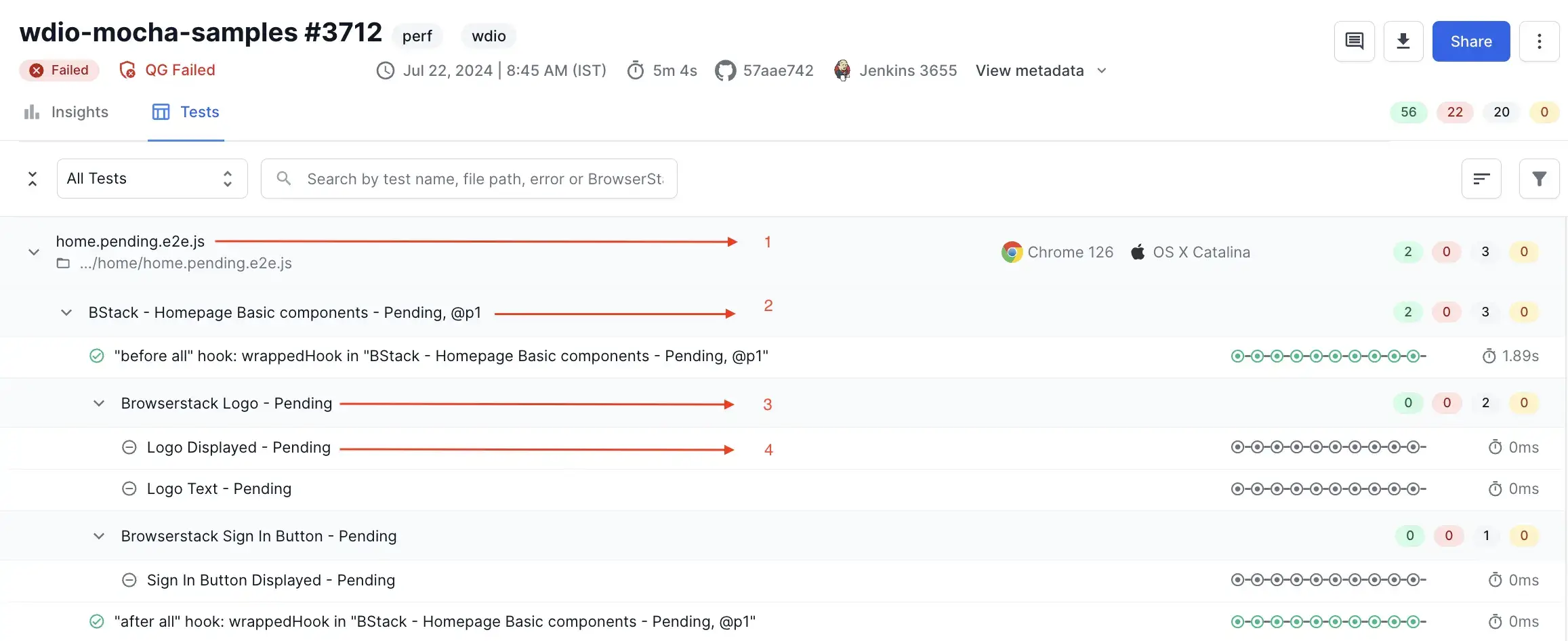 The Always failing count denotes the number of tests in the selected build that continuously fails, as per the conditions set in the Always Failing Smart Tag.