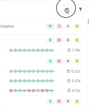 You can view a timeline chart that illustrates the multiple executions of a test. Red, green, and grey circles represent a failed, passed, or skipped test respectively.
