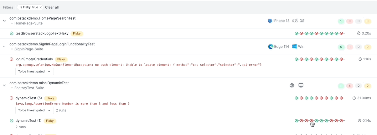 - Flaky Tests: Allows you to view tests that have been marked as flaky.