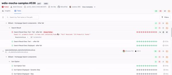 - Always Failing: Allows you to view tests that have consistently failed across multiple runs.