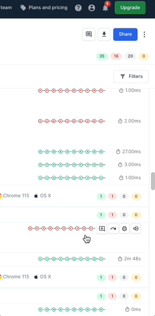 Re-run tests: The ability to re-run tests removes the dependencies on other teams and speeds up the workflow for SDETs. After debugging and fixing a build, SDETs can re-run the build from Test Reporting & Analytics without requesting help from the DevOps team. In Test Reporting & Analytics, you can re-run the tests and automatically map them with previous runs of the same test case.