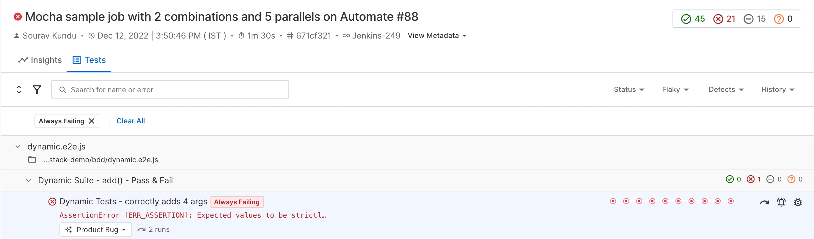In all such scenarios where you know that a test case cannot be relied upon, you can “Mute” the test case to exclude it from the overall build run execution results and all metric calculations that Test Reporting & Analytics provides.