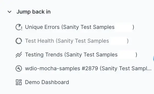 The Overview page is the default landing space for anyone who visits Test Reporting & Analytics. It gives you easy access to the screens you frequently visit, the latest runs of the builds you are interested in, action items you need to work on, and other advanced insights. You can consider the Overview page as the homepage of Test Reporting & Analytics. The Overview page aggregates cross-project information and simplifies navigation across multiple projects and screens.