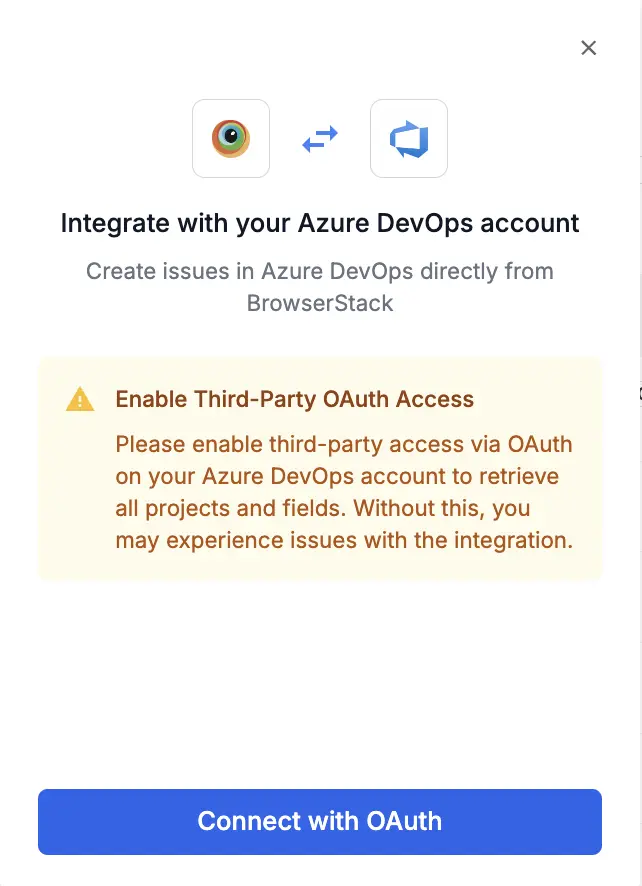 - On the Integrate with your Azure DevOps account prompt, click Connect with OAuth.