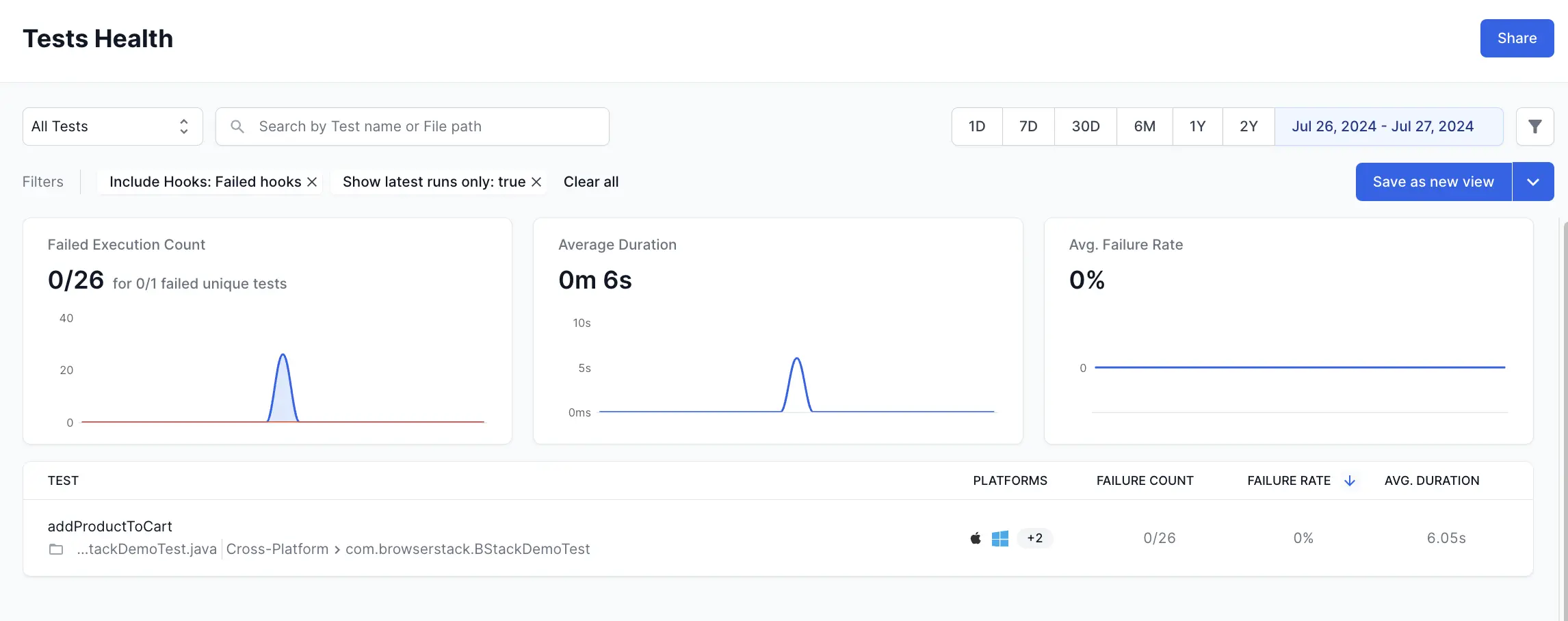 Filter: You can add a filter to include only the data you want in a particular segment. The parameters by which you can filter data are Projects, Unique Build Names, Users, Build Tags, Test Tags, Hooks Visibility, Host Names, Folder names, Device, OS, and Browser.