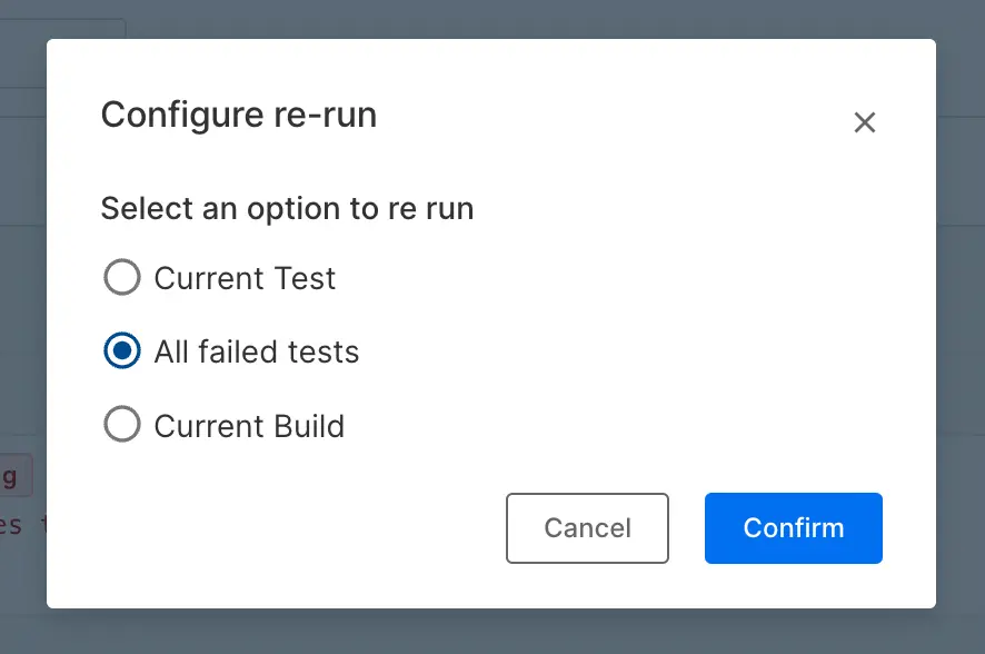 You can also trigger re-runs of specific tests while you’re manually analyzing the failures, right from within Test Reporting & Analytics.