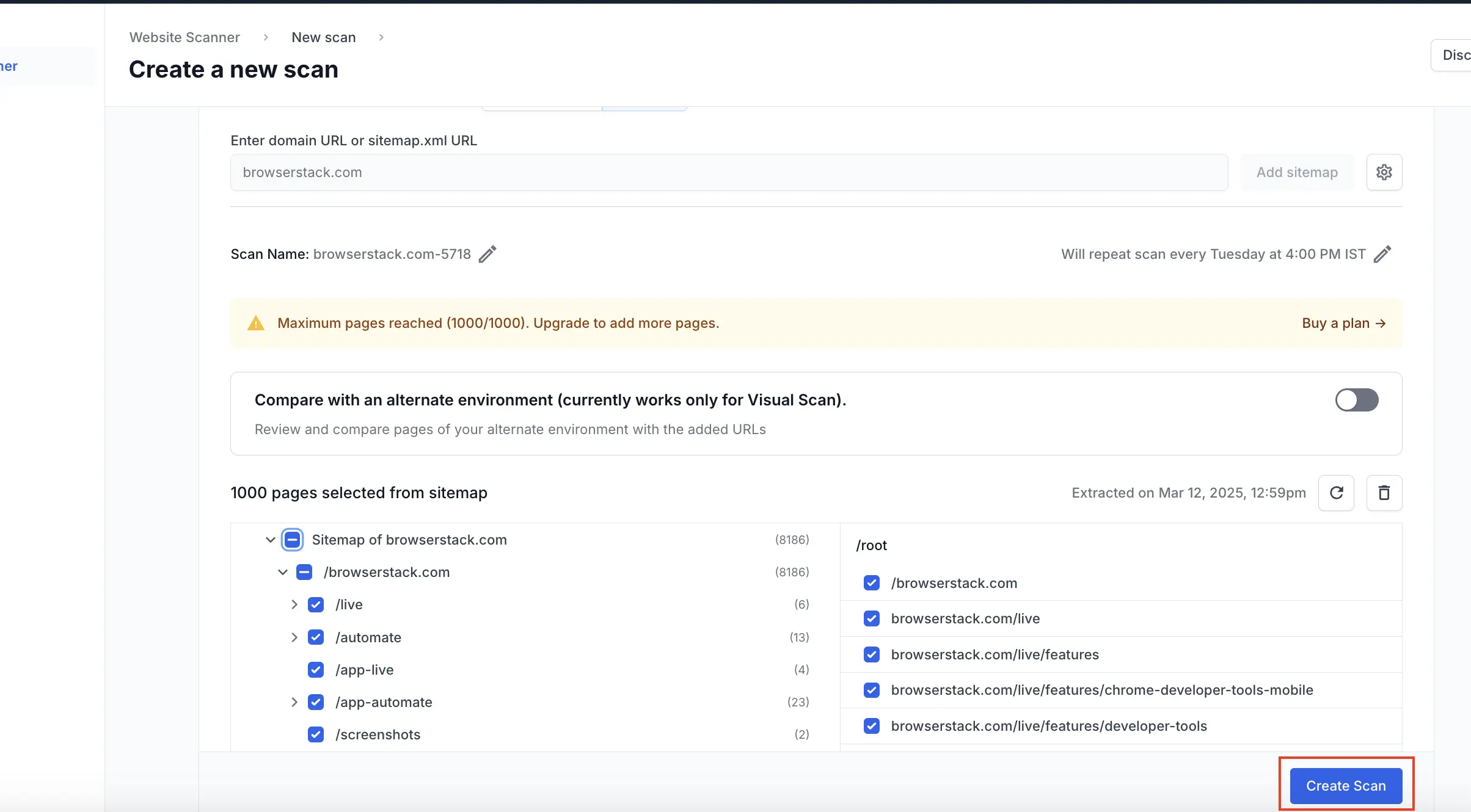 Follow these steps to create a visual or accessibility scan by adding URLs manually: