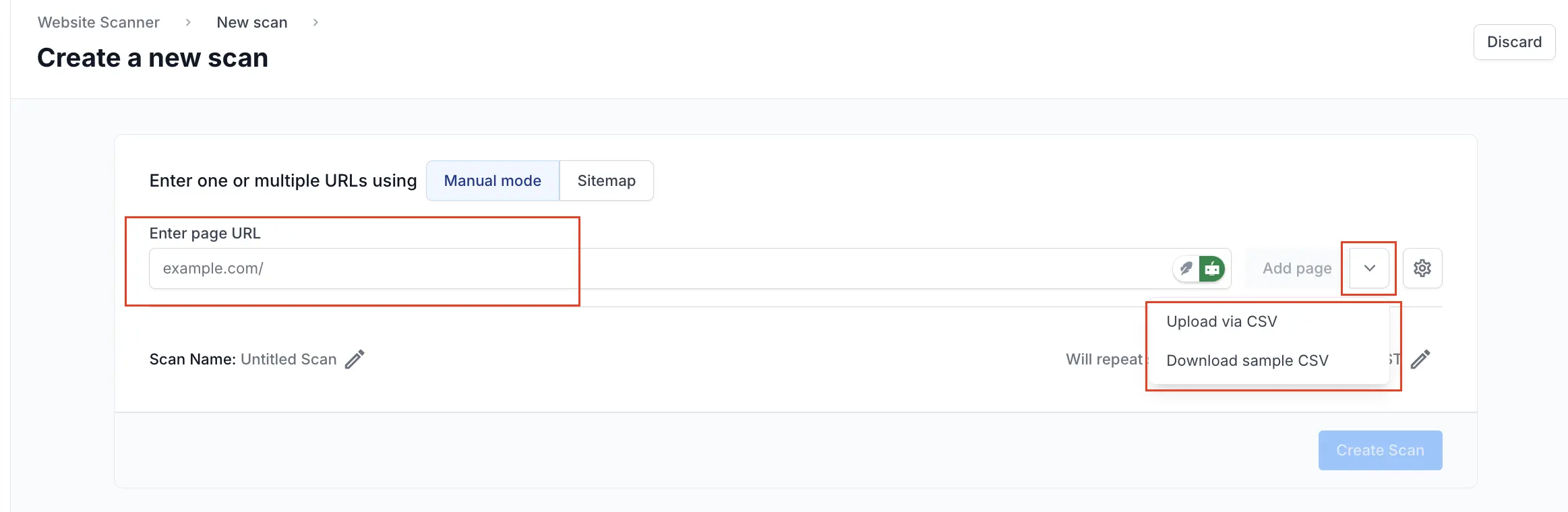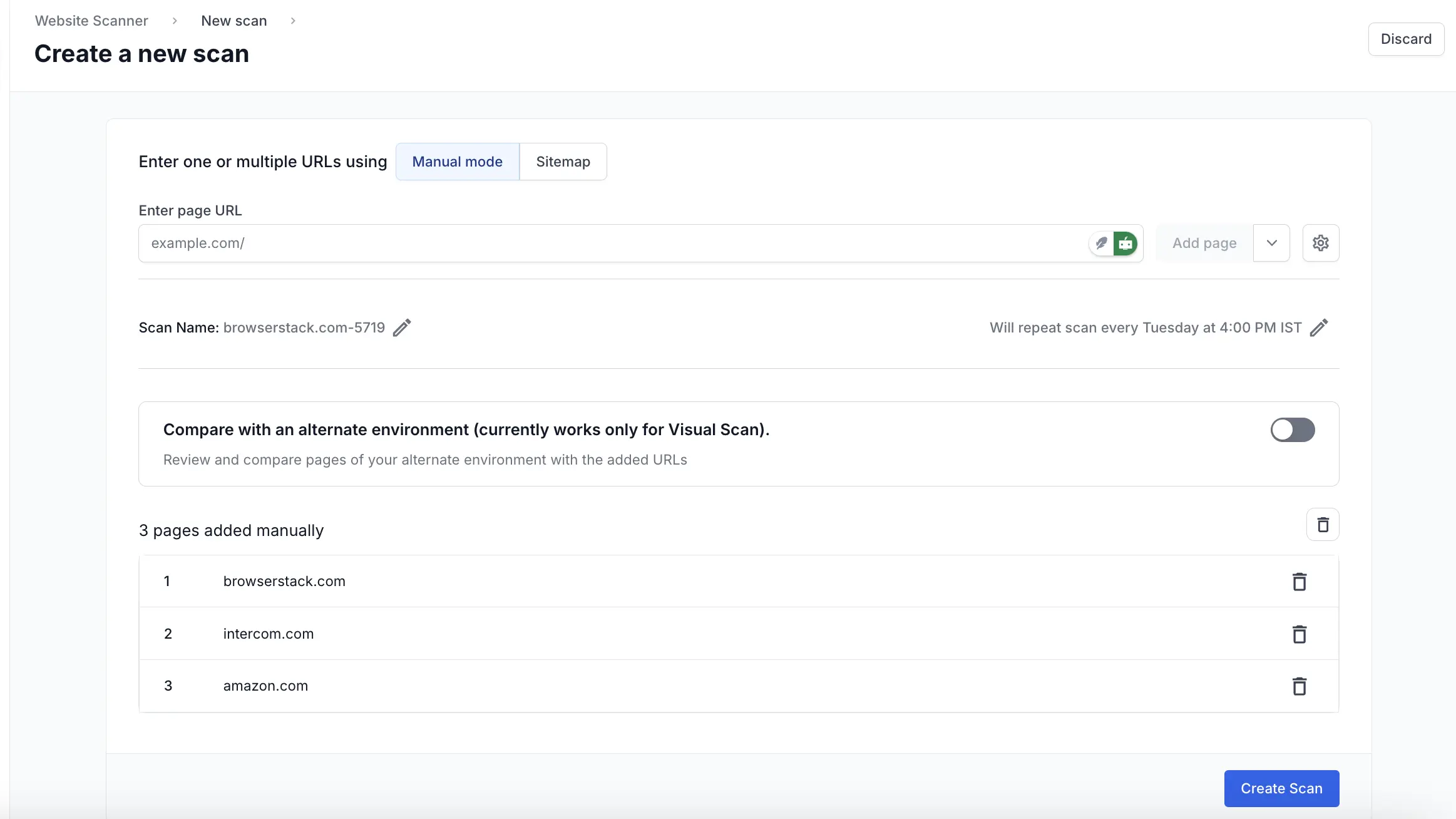 Learn how to create a visual or accessibility scan by adding URLs manually.