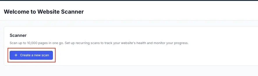 - From Accessibility Testing homepage, click Website Scanner > New scan. You are redirected to Website Scanner.