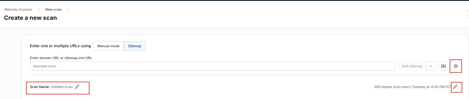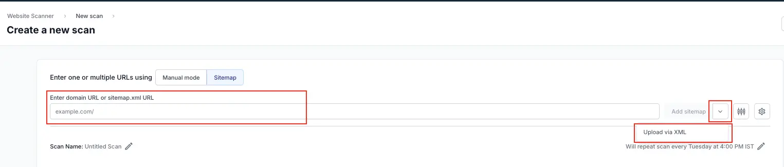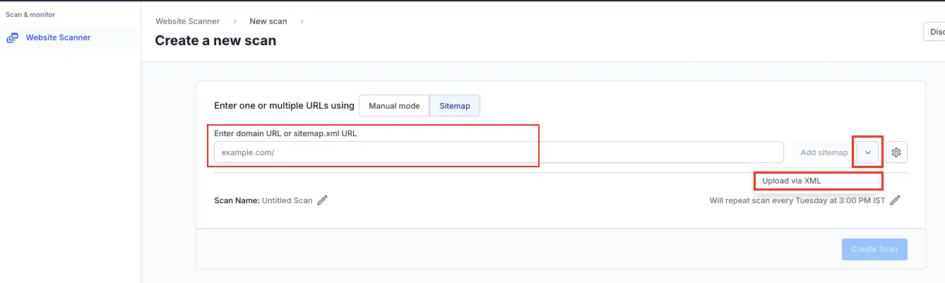 Follow these steps to create a scan by adding URLs from a sitemap: