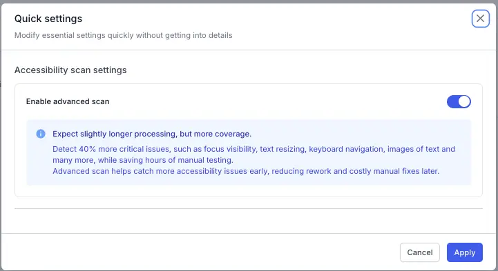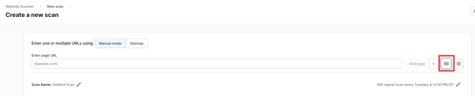 Access Quick settings options by clicking the below indicated icon on the Create a new scan screen.