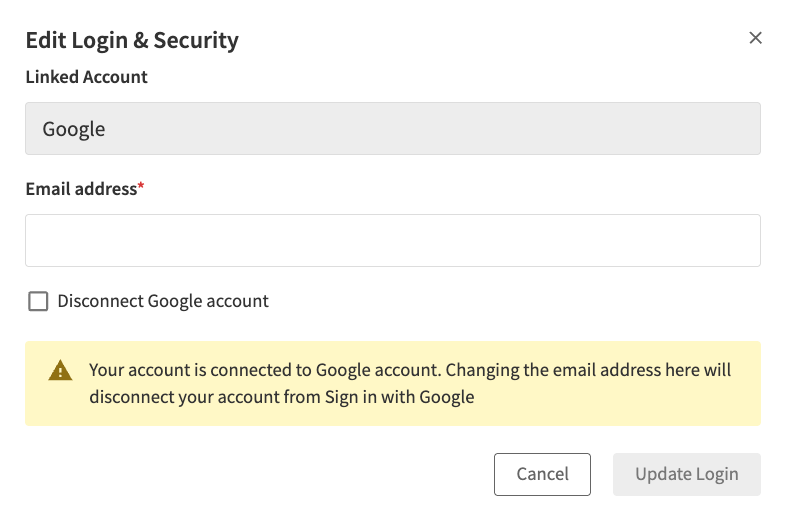 4. Select the Disconnect Google account checkbox to disconnect Google on the form and click Update Login.
